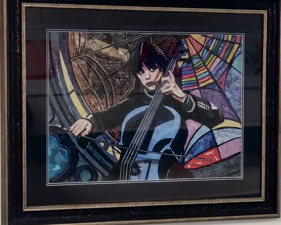 Whilst waiting for my appointment time yesterday afternoon I could not help noticing this rather haunting picture of someone playing a cello or is it a double bass. This is a part to realistic picture where she seems to be under some sort of dome, perhaps a church, and has a most unusual facial expression for someone who should be engrossed in the music that they are producing. Why is she looking to the side?
