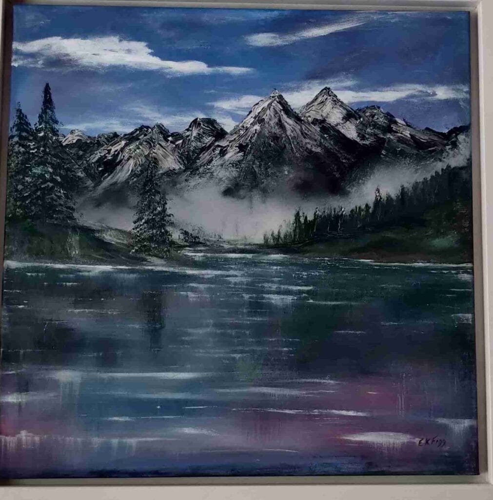 Our artist guest introduced us to his artworks and actually gave me the one illustrated because I liked it, which was hugely generous of him. It now resides over our fireplace in the living room. We asked him when he started painting and he said ‘around 4 years of age’.Â
