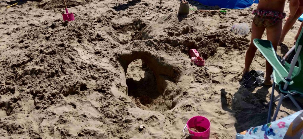 An enterprising your lad building a bridge. I threatened to walk on it to the amusement of the father.