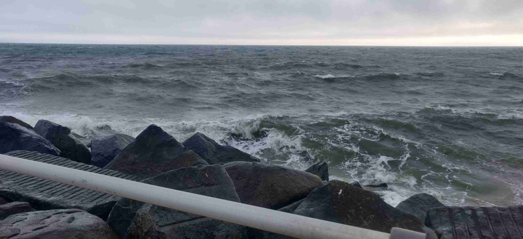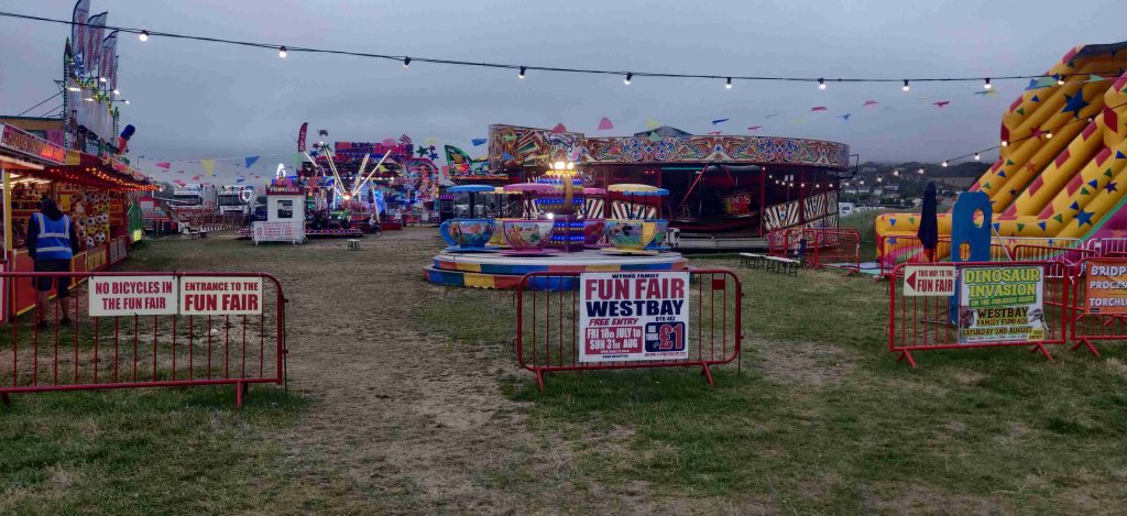 This evening I decided to walk to West Bay which is a distance of about two miles. The wind had got up and was keeping away visitors to the local fair and also providing a generous drench of salt water to those venturing on the jetty.
